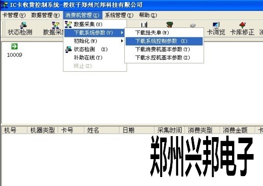 具體操作步驟為:將消費(fèi)機(jī)連接到通訊線上,打開一卡通系統(tǒng)確認(rèn)機(jī)器通訊正常然后選擇--消費(fèi)機(jī)管理--下載系統(tǒng)參數(shù)--下載系統(tǒng)控制參數(shù)--下載消費(fèi)機(jī)基本參數(shù)或者下載水控機(jī)基本參數(shù)(如下圖所示)