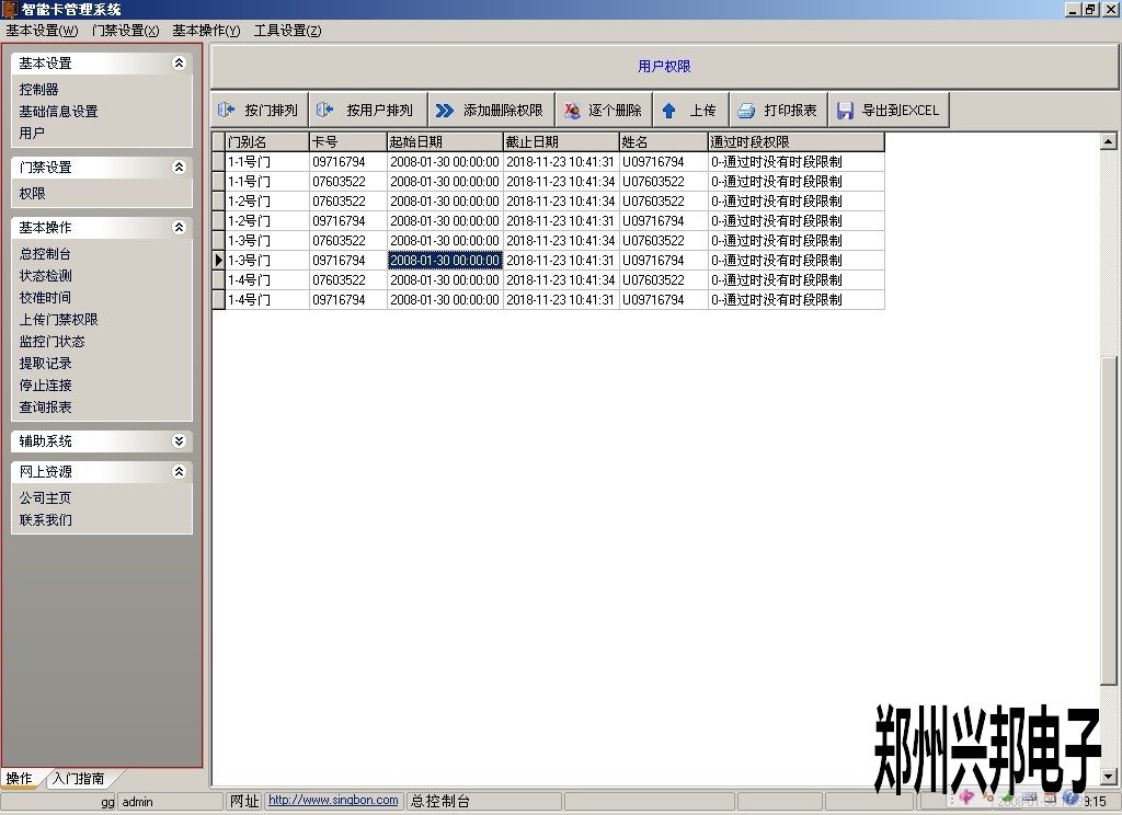 允許已選用戶通過已選定門:把選擇的用戶的開門權(quán)限加到數(shù)據(jù)庫中。可以再通過上傳功能進(jìn)行上傳到控制器中。
