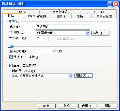 Internet信息服務的日志文件會隨著使用慢慢增大,增大后就會占用一定的磁盤空間,對電腦的操作造成影響,Internet信息服務的日志文件在默認網站的屬性中可以查看如下圖所示