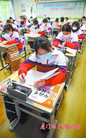 廈門網訊(廈門晚報記者郭文娟林珊吳笛圖/劉東華)今天早上,全市近1.6萬名高三學生重返課堂。距離高考只有三個月了,老師勉勵學子們:“寧吃百日苦,不留終生憾!”校園里張貼的紅色標語,也為學生們加油鼓勁:“努力到無能為力,拼搏到感動自己!”