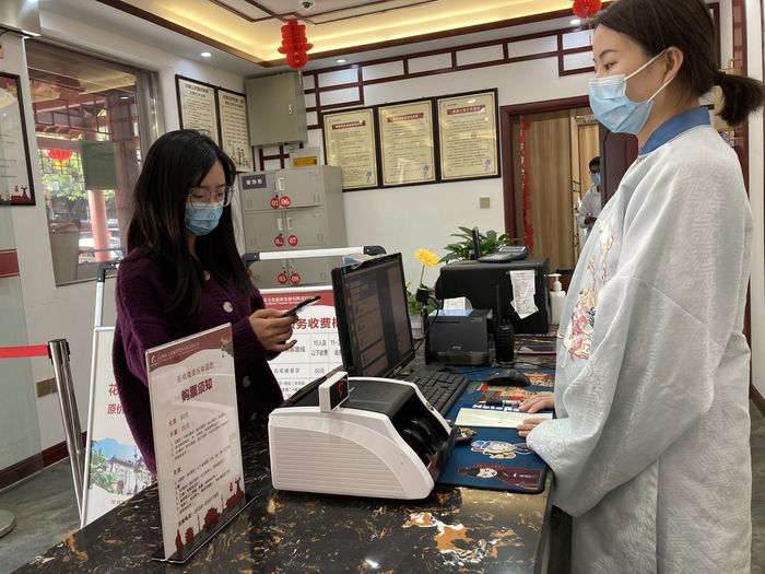 亳州市花戲樓景區(qū)售票處,江蘇游客正在刷社保卡購買門票。 劉景俠攝