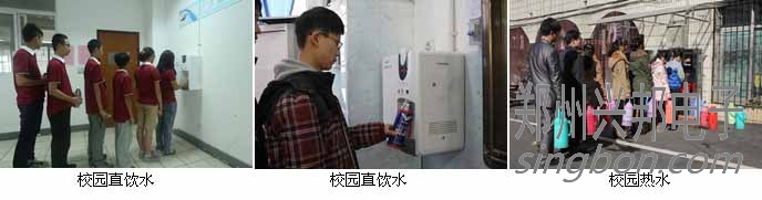 管道直飲水則克服了以上供水方式的所有弊端,在宿舍、教學樓、圖書館、辦公樓等公共區域均可使用,且24小時不間斷供水,刷卡飲水,即取即飲,冷熱轉換,衛生安全。