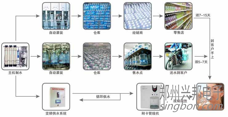 直飲水與桶裝水、瓶裝水生產工藝流程對比圖